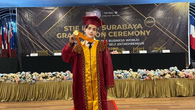 Influencer Ryans Rayel akhirnya bisa menyelesaikan kuliahnya di STIE IBMT Surabaya dengan jurusan yang diambil Manajemen.
