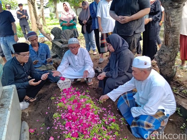 "Di mobil, tidak kuat pasti sedih. Ndak apa-apa nanti ke makam kalau sudah tabur bunga," ucap Assegaf, kerabat dekat keluarga.