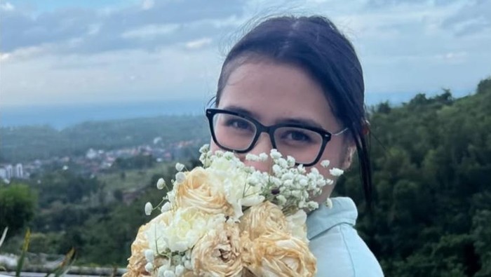 Prilly Latuconsina mengunggah foto di Instagram Story pribadinya kemarin. Sebagian wajahnya ditutup menggunakan buket bunga berwarna putih dan kuning kecoklatan.