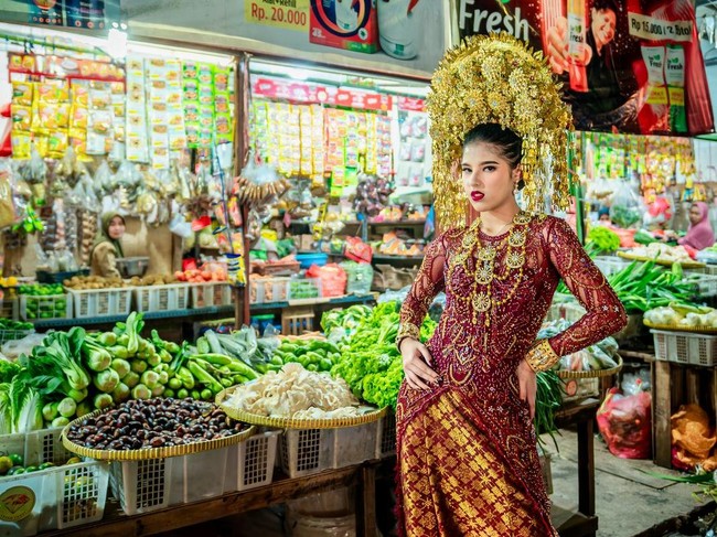 Langkah anggun Putri Widhiasari Kusumaningtyas saat berjalan di tengah hiruk-pikuk pasar berhasil jadi sorotan. Puteri Indonesia Remaja Budaya 2023 itu menjadikan tempat tersebut untuk catwalk.