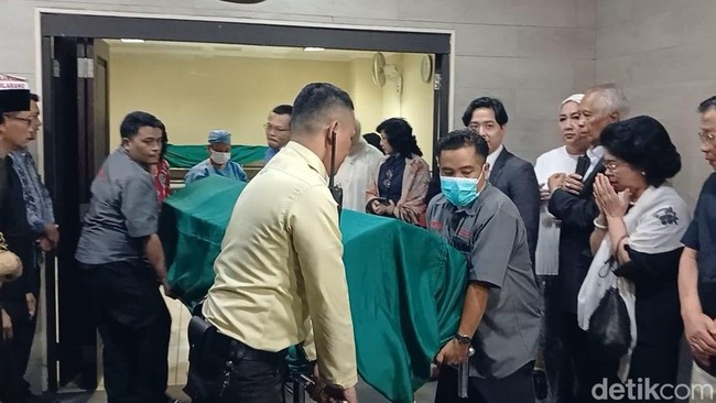 Pantauan detikcom, jenazah Titiek Puspa dibawa keluar menggunakan keranda dengan tutup kain hijau sekitar pukul 20.00 WIB. Deretan public figure terlihat sendu memandang keranda Titiek Puspa dimasukkan ke ambulans.