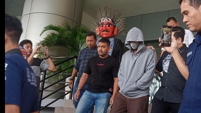 Pertama kalinya terlihat usai ditangkap, suami Renata Kusmanto itu memakai hoodie abu-abu dengan sebagian besar wajahnya juga ditutupi masker. Dia juga terus menunduk sepanjang jalan.