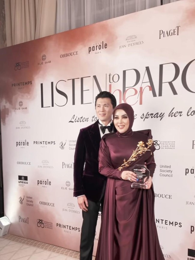 Syahrini terlihat menghadiri gala dinner Listen to Her Parole yang diadakan di Carlton Hotel Cannes pada Rabu (14/5/2025). Di sana, ia mendapatkan penghargaan dari United Society Council melalui platform Listen To Her Parole. Foto: instagram Syahrini