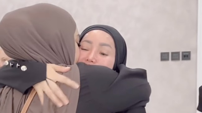 Wajah Kristina terlihat sembap saat Rieta Amilia dan Chintami Atmanagara takziah. Kristina membenamkan wajahnya dalam pelukan ibunda Nagita Slavina dan Chintami.