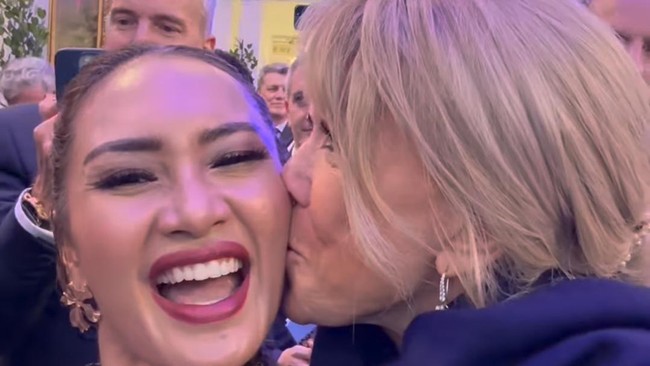 Ajeng Kamaratih diketahui dipercaya jadi MC dalam acara jamuan kenegaraan Presiden Prancis Emmanuel Macron di Indonesia. Setelahnya, ia bisa berbincang dengan Brigitte Macron hingga puncaknya pipinya dicium. (Foto: dok Instagram)