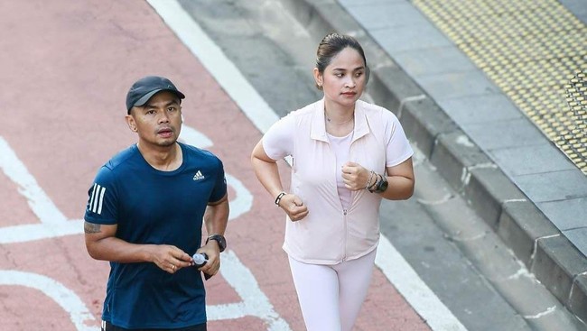 Wendi Cagur dan istri, Revti Ayu, saat lari di kawasan Jakarta pada Minggu (1/6/2025) pagi. (Foto: dok Instagram)
