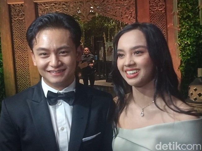 Lyodra Ginting dan Randy Martin menghadiri unduh mantu Al Ghazali dan Alyssa Daguise, Kamis (19/6/2025). Pasangan ini mengagumi nuansa adat Jawa yang kental dalam acara tersebut. Foto: Ahsan/detikcom