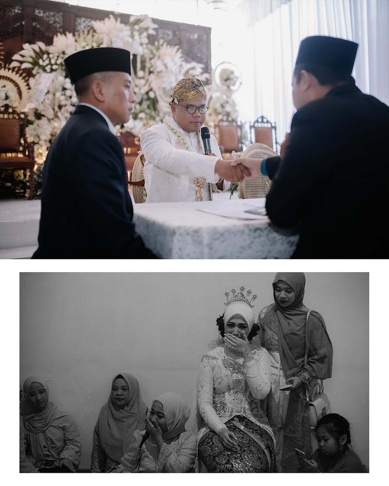 Fajar Gusti Pangestu mengucapkan ijab kabul dengan lantang dan lancar. Setelah dinyatakan sah oleh saksi dan penghulu, Zahra MCI tampak menangis. (Foto: dok Instagram zahra.mci12)