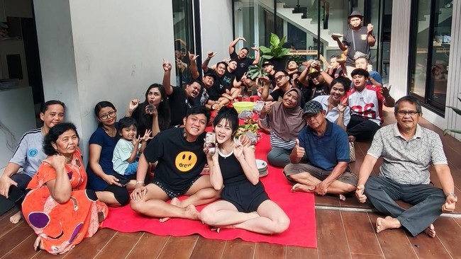 Dilihat dari Instagram, Rabu (9/7/2025), Bella Bonita mendapat kejutan dari Denny Caknan dengan kehadiran banyak orang. Mereka membawa kue hingga tumpeng untuk pasangan yang menikah pada 7 Juli 2023 itu. (Foto: dok Instagram bellabonita_r.a)