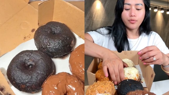 Donat Pinkan Mambo viral. Food vlogger Farida Nurhan juga turut mencoba donat buatan tangan Pinkan Mambo.