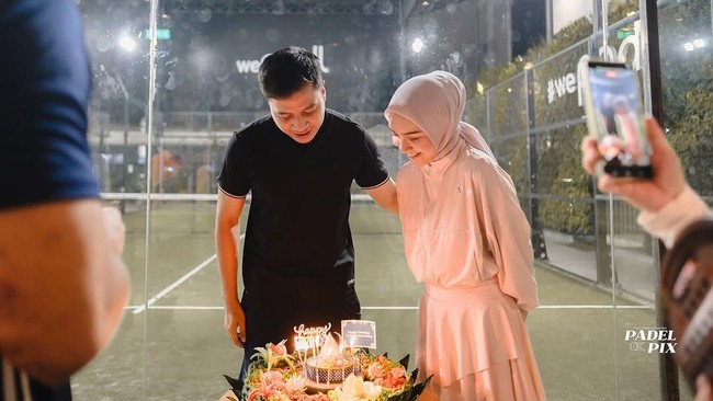 Dilihat di Instagram, Rabu (6/8/2025), Melody Prima membawakan tumpeng saat suaminya main padel. Ilham Akbar Prawira memandangi tumpeng tersebut sambil berdoa. (Foto: dok Instagram melodyprima / padelpix)