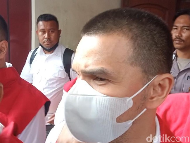Jakarta - Jonathan Frizzy menjalani sidang perdana kasus obat keras di Pengadilan Negeri Tangerang. Ini penampakan Ijonk berompi merah, rambut cepak, dan tangan diborgol.