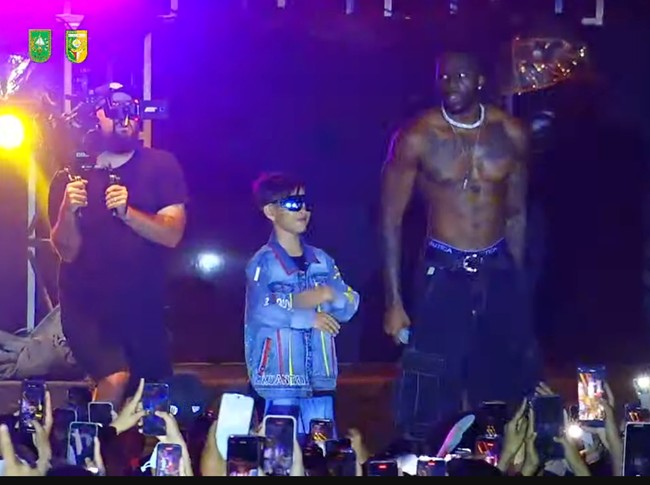 Rapper asal Amerika Serikat, Melly Mike, tampil di malam penutupoan Festival Pacu Jalur 2025 di Kuantan Singingi, Riau. Melly Mike juga mengajak bocah penari Pacu Jalur yang viral, Dikha, ke atas panggung. Foto: (dok. Diskominfo Kuantan Singingi)