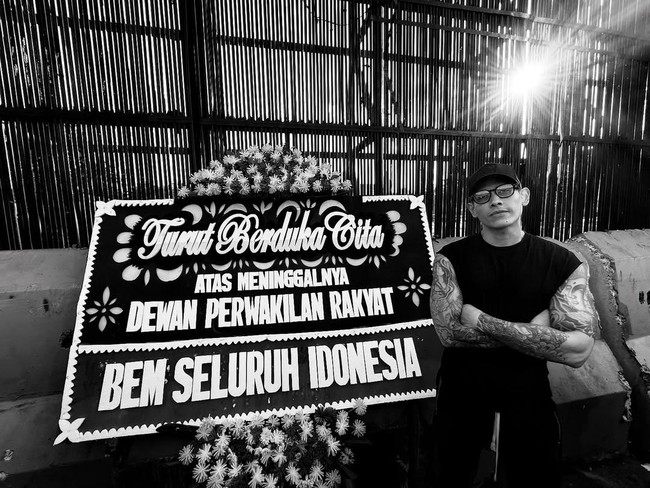 Ganindra Bimo ikut turut bergabung dengan massa di depan gedung DPR RI pada Kamis (4/9/2025). Foto: Instagram @ganindrabimo