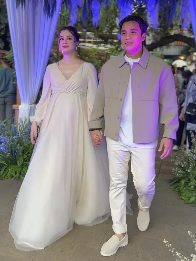 Vika Kolesnaya menggelar gender reveal di kawasan Jagakarsa, Jakarta Selatan, Minggu (14/9/2025). Vika anggun memakai long dress putih, begitu juga dengan Billy Syahputra. Foto: Instagram @carendelano