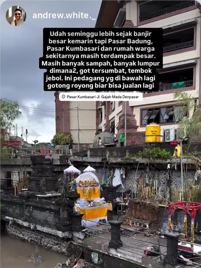 Nana Mirdad dan Andrew White bersama beberapa tim, turun ke beberapa titik di Bali terdampar Banjir. Ini suasana Pasar Badung. "Ini Pasar Badung. Memang airnya sudah surut, tapi dampaknya masih parah. Ini yang di bawah, belum bisa jualan, sampah masih banyak, lumpur masih banyak," kata Andrew White dilihat dari Instagram Story Andrew White, Kamis (18/9/2025). Foto: INstagram Story @nanamirdad_ dan @andrew.white._
