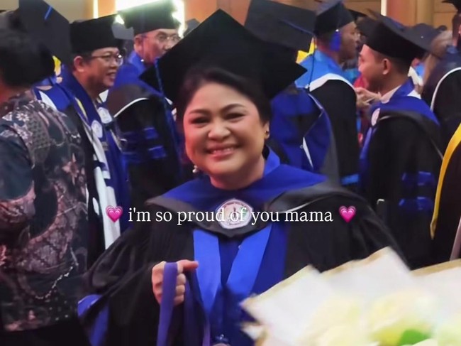 Jakarta - Marion Jola bahagia banget melihat ibundanya, Sherly N. Dauta Elim, wisuda S2. Ibunda Marion Jola menyandang gelar Magister Teologi pada usia 52 tahun.
