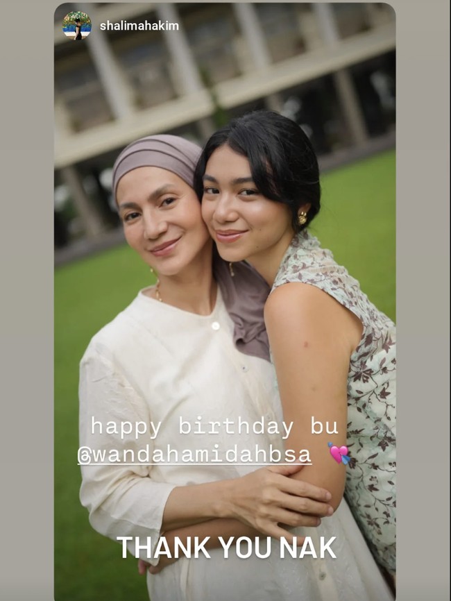 Wanda Hamidah mendapat ucapan dari putrinya, Shalima Hakim, "Happy birthday Bu @wandahamidahbsa," tulis Shalima Hakim. Wanda membalas dengan ucapan singkat. "Thank you Nak." (Foto: Instagram @wandahamidahbsa)