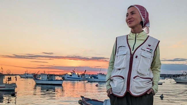 "Dan saya sangat bahagia berada di sini, dalam perjalanan menuju Gaza bersama ratusan aktivis di seluruh dunia dengan satu misi: mematahkan pengepungan dan mengirimkan bantuan kemanusiaan untuk Gaza dalam gerakan damai ini, Global Sumud Flotilla," sambungnya.