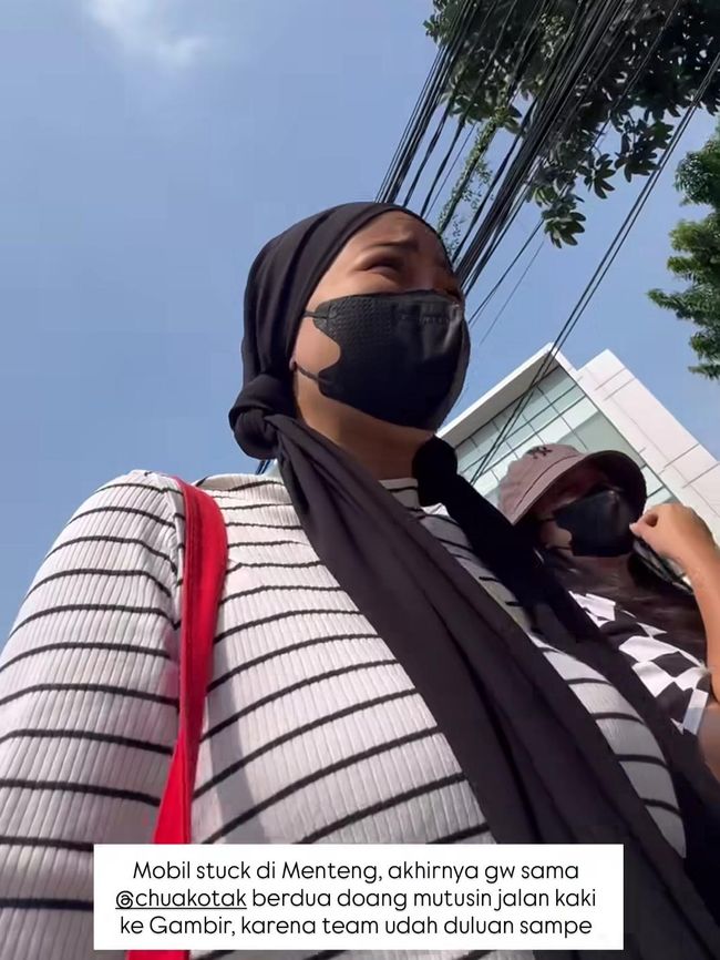 Tantri menceritakan perjalanan menghibur di Monas acara HUT ke-80 TNI. Dia dan Chua memilih jalan kaki menuju Gambir karea mobil sudah stuck dari Menteng. Foto: Instagram @tantrisyalindri