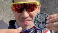 Asisten Rafffi Ahmad, Mufli berhasil mendapatkan Medali Six Stars. Ini medali dari program Abbott World Marathon Majors yang diberikan kepada pelari yang berhasil menyelesaikan keenam maraton utama di dunia: Tokyo, Boston, London, Berlin, Chicago, dan New York. Foto: Instagram @raffinagita1717