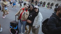 Nagita Slavina, Rieta Amilia, dan Gya P sadiqah mendukung suami dan menantu mereka ikut Chicago Marathon 2025 pada Minggu (12/10/2025) waktu setempat. Foto: Instagram @raffinagita1717