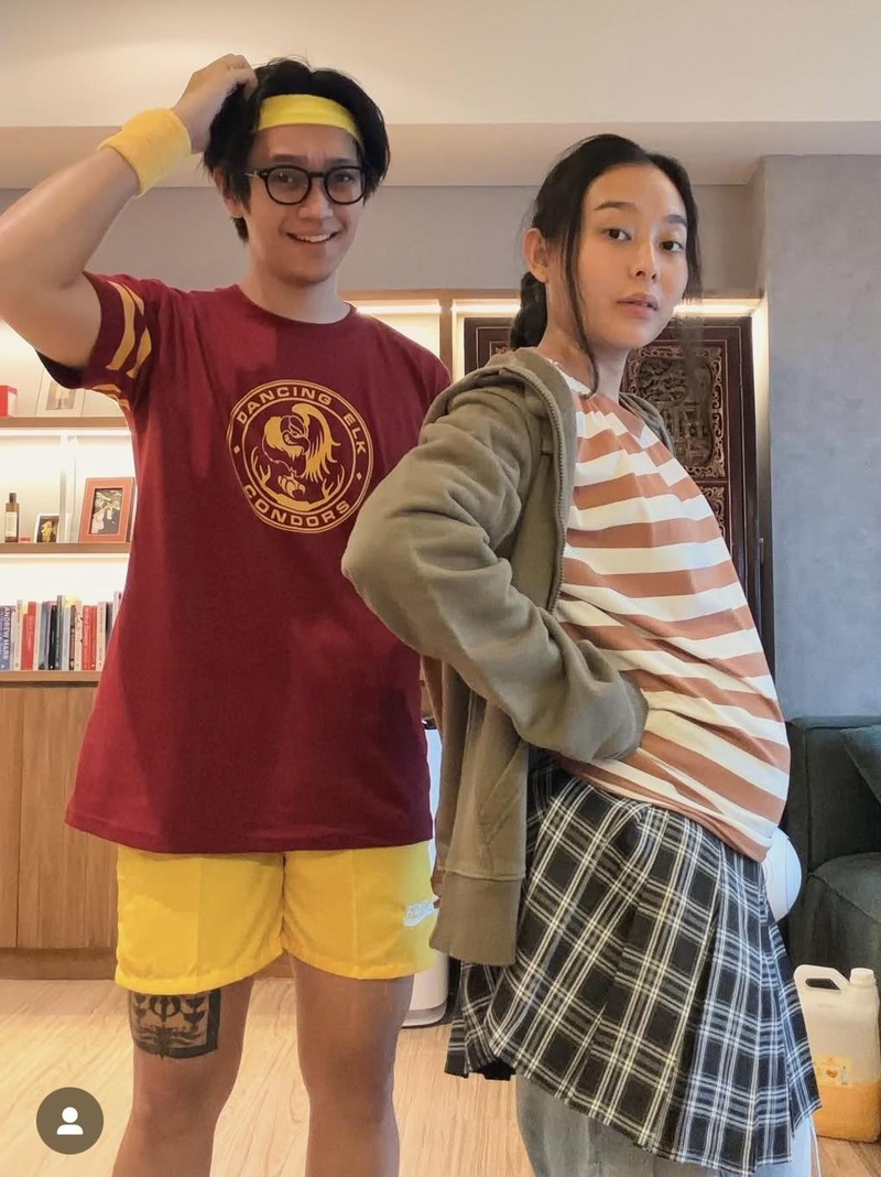Brandon Salim mengumumkan kabar bahagia soal kehamilan Dhika Himawan pada 1 November 2025. Pasangan yang menikah pada 19 April 2025 itu terinspirasi dari poster film populer tahun 2007, Juno. Dhika memamerkan baby bump. Akhir pekan kemarin mereka baru menggelar 7 bulanan. Foto: Instagram @brandonsalim
