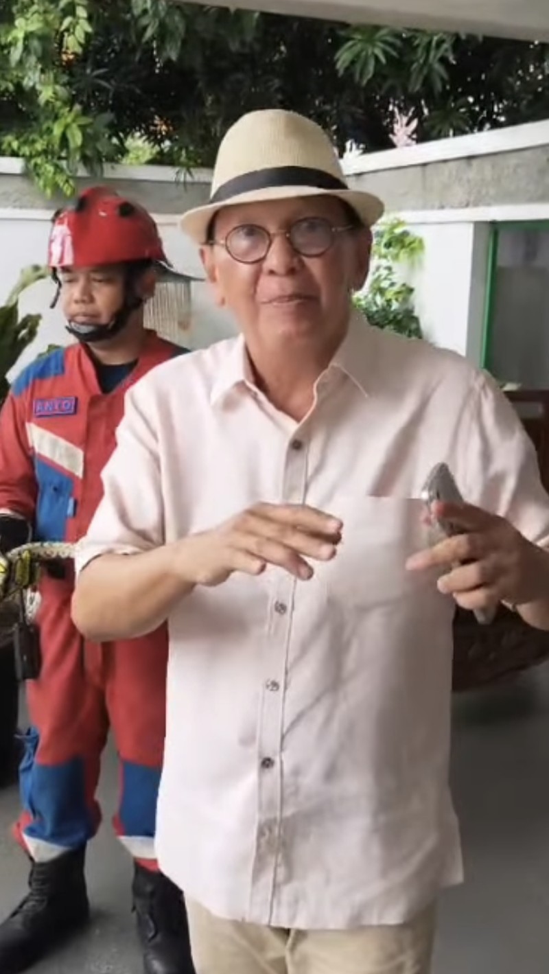 Terbaru adalah Roy Marten yang meminta tolong kepada petugas Damkar untuk mengamankan ular sanca di rumahnya. Momen ini terlihat dalam Instagram miliknya kemarin.  Foto: dok instagram Roy Marten