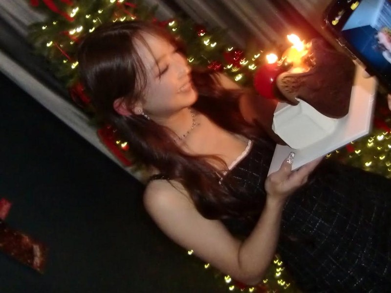 Dita Karang tertawa sambil memegang kue ulang tahun dilihat dari akun Instagram pribadinya, Kamis (1/1/2026). Foto: Instagram @hey__deets