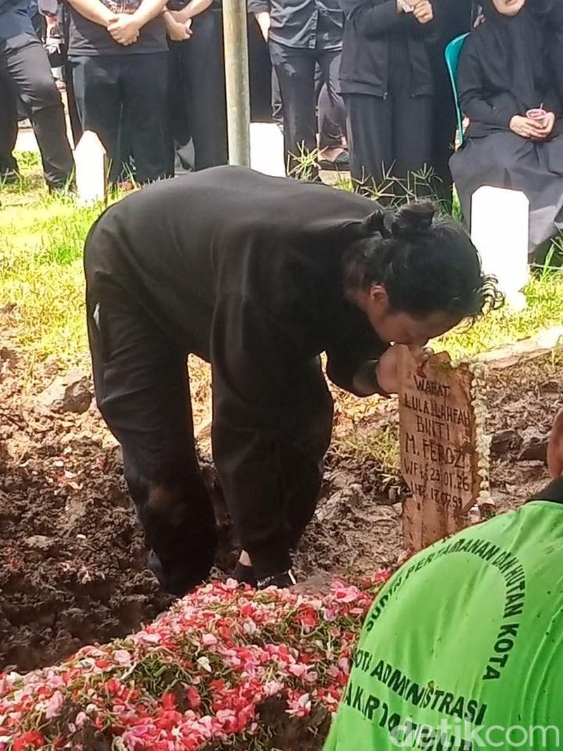 Tapi usai semuanya selesai, tangisnya pecah. Ia tak kuasa menahan kesedihan ditinggal Lula Lahfah selamanya. "Jawab gue, kenapa semua orang ninggalin gue? Kenapa?" teriak Reza Arap di TPU Rawa Terate, Cakung, Jakarta Timur, Sabtu (24/1/2026). Foto: Ahsan/detikhot