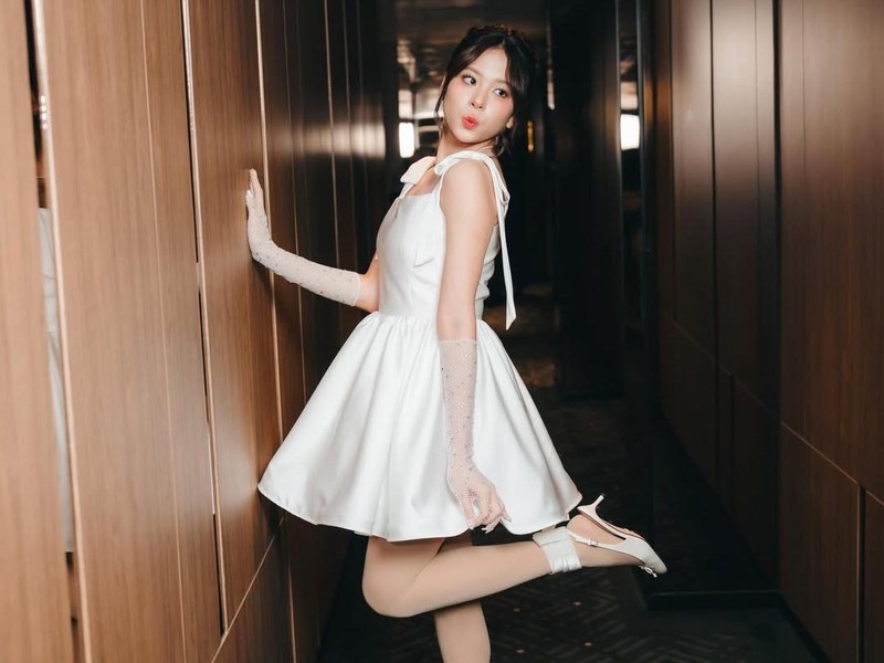 Zee Asadel gaun putih dengan rok mengembang bak balerina. Ia memadukannya dengan sepatu heels putih. (Foto: dok Instagram zeeasadel)