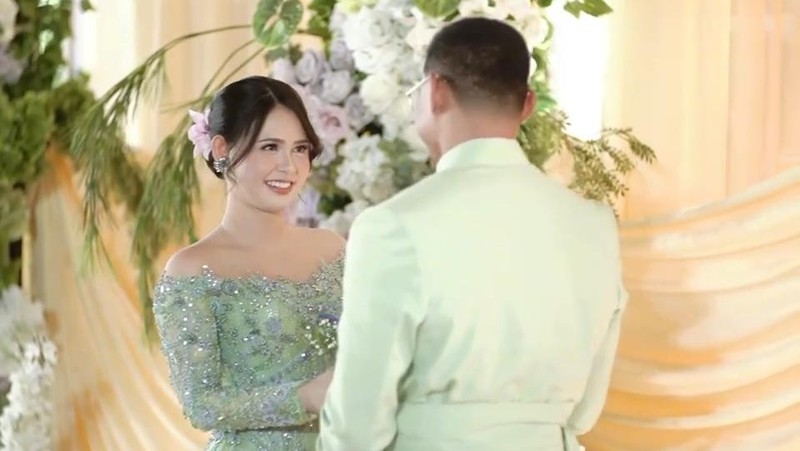 Maizura tampak cantik memakai kebaya modern berwarna hijau saat lamaran. (Foto: dok Instagram maiiizura)