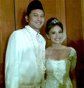 Pernikahan bintang 'Kawin Kontrak' itu tak dihiasi air mata bahagia. Sepanjang hari pentingnya, sejak akad nikah hingga resepsi, Masayu terus menebar senyum.