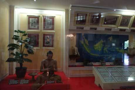 Tak heran, disini ditampilkan sesosok patung yang tengah menulis di atas daun. "Ini seorang pujangga kerajaan sedang menulis, belum ada medium kertas saat itu."