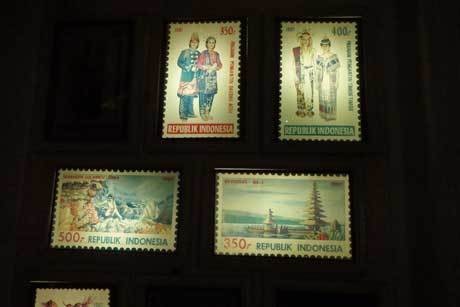 Maka salah satu ruang saji, menggmabrkan beberapa patung anak-anak yang tengah mempersiapkan pemasangan koleksi filateli untuk pameran.