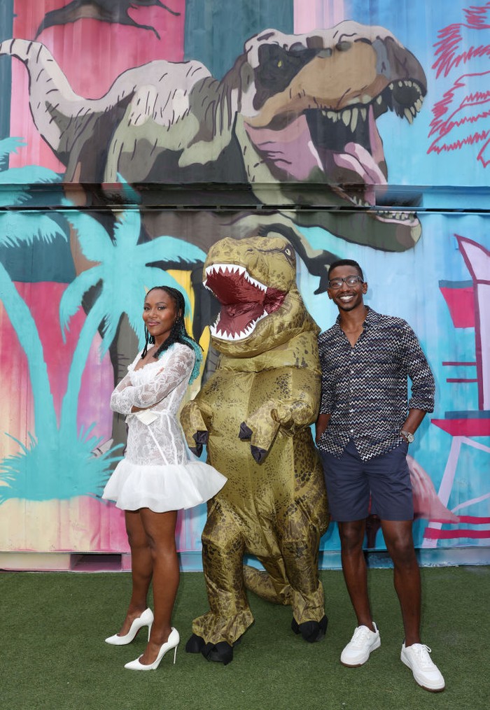 DeWanda Wise dan Mamoudou Athie terlihat saat pembukaan mural Jurassic World: Dominion.Β  Foto: Getty Images/Alexander Tamargo
