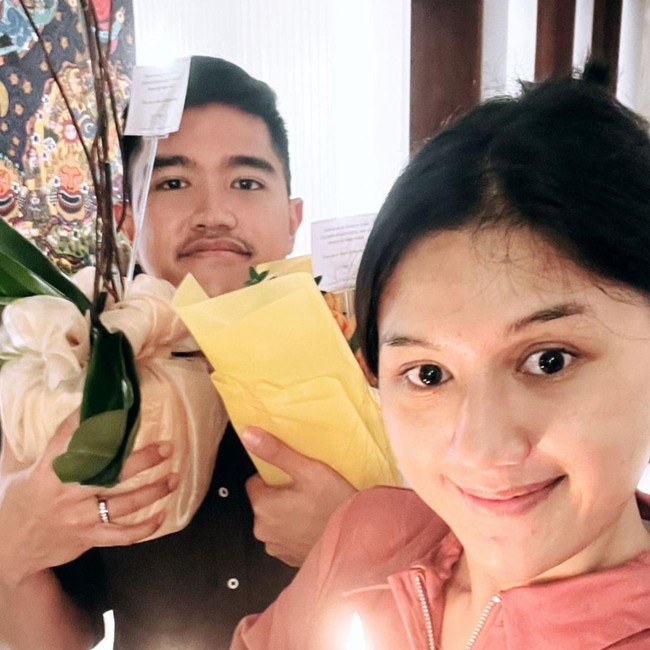 Jakarta - Kaesang Pangarep memberikan dua bunga untuk ulang tahun Erina Gudono. Isi kartu ucapan yang diberikan Kaesang untuk Erina pun bikin salah fokus. Begini tulisannya...