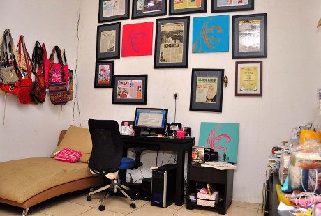 Ruangan yang dimaksud Asma adalah kamar yang terdapat komputer untuknya menulis cerita. Sekaligus lokasi menaruh barang usahanya seperti tas-tas yang merupakan desain barangnya.