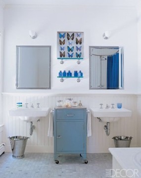 Bintang 'Sex and the City' ini mempunyai kamar mandi yang mewah seperti kediaman pribadinya di kawasan Hamptons, Amerika Serikat. Kamar mandi di rumah pantainya tersebut memiliki aksen biru cerah dengan dominasi warna putih. Lemari biru muda yang berada di antara wastafel menambah unik kamar mandi dari Sarah Jessica Parker.