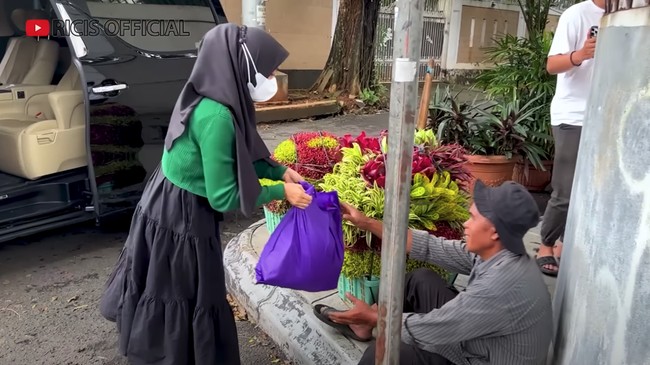 "Pak, ada sembako untuk bulan puasa nanti, dimakan ya pak," kata Ria Ricis.