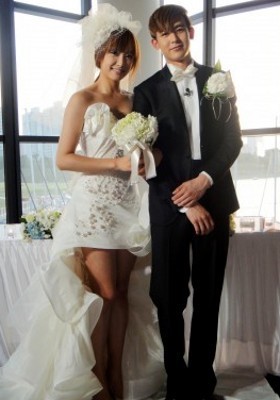 Leader f(x) Victoria tampak cantik mengenakan gaun pengantin bersama sang suami virtual untuk program 'We Got Married' Nichkhun '2PM'. Desain gaun yang dikenakannya pun tak biasa dengan potongan pendek di bagian depan namun menjuntai manis di bagian belakang.
