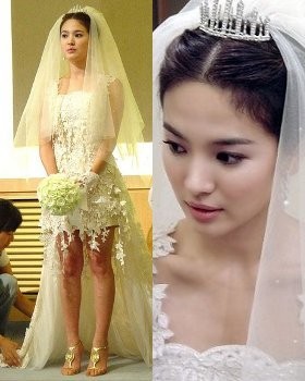 Para pecinta drama seri 'Full House' pasti kenal benar dengan gaun ini. Gaun yang dikenakan Song Hye Gyo (Han Ji Eun) saat menikah dengan Rain (Lee Young Jae) itu pun unik karena berupa gaun pendek dari bahan lace.