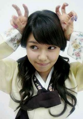 Di foto ini Sooyoung mengenakan baju tradisional Korea, hanbok. Alih-alih bergaya anggun, Sooyoung malah mengangkat kedua tangannya membuat tanduk di kepala.