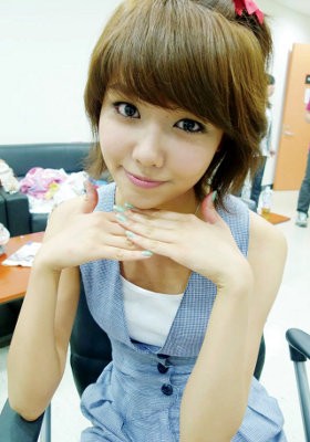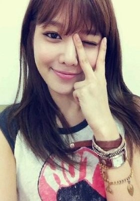 Sooyoung mengedipkan sebelah mata sambil bergaya dengan satu jari membentuk V. Imut, ya!