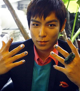 Tak hanya GD, si ganteng TOP juga memulas kukunya dengan cat kuku serupa. Namun tak seperti GD yang percaya diri, TOP tampaknya canggung dengan kuku semacam itu.