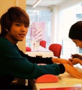 Tak jelas apa yang dilakukan Woo Hyun pada kukunya. Yang jelas ia sedang melakukan perawatan kuku di salon khusus kuku. Kira-kira jadinya seperti apa ya?