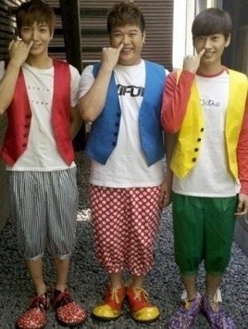 Geng Teuk Academy Leeteuk, Eunhyuk, dan Shindong berpose dengan baju badut. Mereka pun memasukkan kelingking mereka ke hidung dan bergaya seperti ngupil.