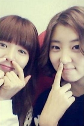 Kedua personel 4Minute ini biasa tampil cantik di panggung. Tapi di foto ini HyunA dan Sohyun tampak seperti sedang ngupil