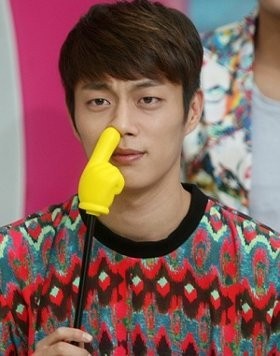 Ini saat Doojoon bersama BEAST tampil di CJ E&M Center untuk syuting 'Wide Entertainment News' pertengahan tahun lalu. Tak tanggung, Doojoon menggunakan tangan palsu raksasa untuk berpose.