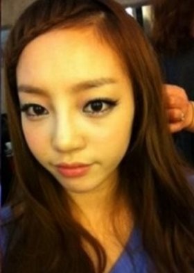 Si cantik Hara 'KARA' sedang ditata rambutnya. Sang hairstylist memilih gaya seperti ini pula untuk Hara. Poninya dikepang ke samping, Hara tampak gemuk ya! Kamu mau coba?